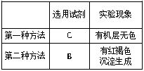 | | 選用試劑 | 實(shí)驗(yàn)現(xiàn)象 |
