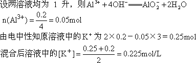 =0.4 mol/L,當加入等體積0.4mol/L KOH溶液時,生成的沉淀恰好完全溶解。則反應(yīng)后溶液中K+的濃度約為