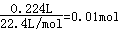 D、224mLH2(標準狀況)的物質(zhì)的量為