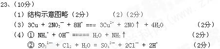 (3)由X、Y、Z、W四種元素中的三種組成的一種強酸,該強酸的稀溶液能與銅反應(yīng),離子方程式為 。