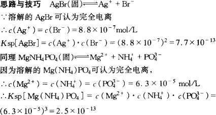 已知室溫時(shí)AgBr的溶解度是8.8×10-7 mol·L-1,MgNH4PO4溶解度是6.3×10-5 mol·L-1,求AgBr、MgNH4PO4的溶度積.