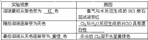 | 溶液最初從紫色變?yōu)? 色 | 氯氣與水反應(yīng)生成的HCl使石蕊試液變紅 |