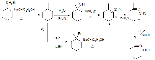 6-羰基庚酸是合成某些高分子材料和藥物的重要中間體。某實驗室以溴代甲基環(huán)己烷為原料合成6-羰基庚酸,請用合成反應(yīng)流程圖表示出最合理的合成方案(注明反應(yīng)條件)。