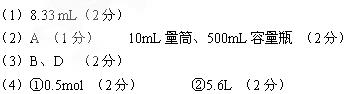 (11分)實驗室常用的濃鹽酸物質(zhì)的量濃度約為12.0mol·L-1。