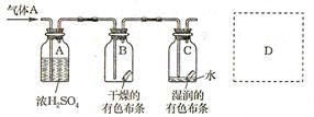 (10分)某學(xué)生應(yīng)用如圖所示的方法研究物質(zhì)的性質(zhì),其中氣體 A 的主要成分是氯氣,雜質(zhì)是空氣和水蒸氣;卮鹣铝袉栴}:
