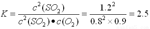 【解析】(共7分)由題可知,SO2的變化濃度為2mol·L-1×60%=1.2mol·L-1,則O2和SO3的變化濃度分別為0.6mol·L-1和1.2mol·L-1,則: