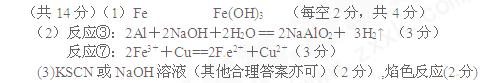 (14分)現(xiàn)有金屬單質(zhì)A、B、C、I和氣體甲、乙、丙及物質(zhì)D、E、F、G、H。其中B是地殼中含量最多的金屬。它們之間能發(fā)生如下反應(yīng)(圖中有些反應(yīng)的產(chǎn)物和反應(yīng)的條件沒有全部標(biāo)出)。![]()