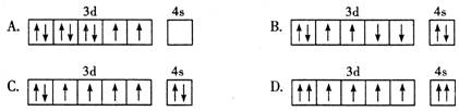 在核電荷數(shù)為26的元素Fe的原子核外3d、4s軌道內(nèi),下列電子排布圖正確的是: | |