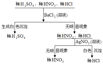 在3支試管中分別盛有稀硫酸、稀硝酸、稀鹽酸,試設計簡單的實驗方案鑒別它們,寫出有關反應的化學方程式。