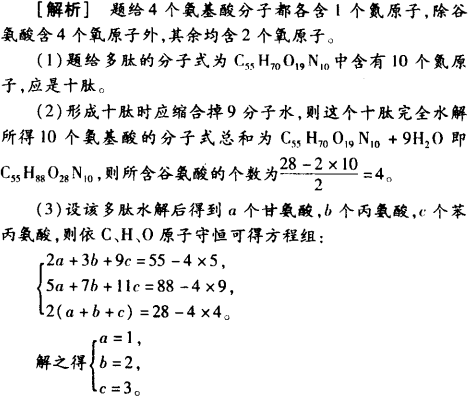(2)該多肽水解后,得到___________個(gè)谷氨酸分子、___________個(gè)苯丙氨酸分子(填數(shù)字),其理由是(簡(jiǎn)要文字?jǐn)⑹龌蛄谐龇匠探M均可)_________________________________。
