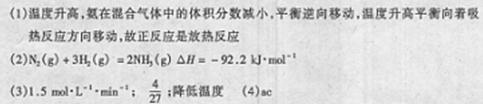 (2)在一定溫度下,將2molN2和6 molH2通入到體積為1 L的密閉容器中,發(fā)生反應(yīng)N2+ 3H2