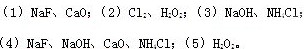 (10分)在NaF、NaOH、CaO、Cl2、NH4Cl、H2O2等物質(zhì)中只含有離子鍵的物質(zhì)有: ;只含有共價(jià)鍵的物質(zhì)有: ;既含有離子鍵又含有共價(jià)鍵的物質(zhì)有: ;屬于離子化合物的有: ;屬于共價(jià)化合物的有: 。