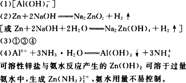 (4)寫(xiě)出可溶性鋁鹽與氨水反應(yīng)的離子方程式________.試解釋在實(shí)驗(yàn)室不適宜用可溶性鋅鹽與氨水反應(yīng)制備氫氧化鋅的原因________.