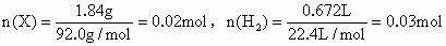 的相對密度為46.0;③取1.84gX與過量的金屬鈉完全作用后,生成672mL(標準狀況)氣體;④一定質量的X完全燃燒后,產生的氣體依次通過濃硫酸和堿石灰,使兩者的質量分別增加36.0g和66.0g.試求X的結構簡式.