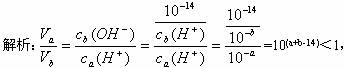 25°C時(shí),若體積為Va、pH=a的某一元強(qiáng)酸與體積為Vb、pH=b 的某一元強(qiáng)堿混合,恰好中和,且已知Va<Vb和a=0.5b,請(qǐng)?zhí)顚懴铝锌瞻祝?/p>