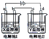 下圖所示的電解池I和II中,a、b、c和d均為Pt電極。電解過(guò)程中,電極b和d上沒有氣體逸出,但質(zhì)量均增大,且增重b<d。符合上述實(shí)驗(yàn)結(jié)果的鹽溶液是