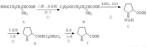 同時(shí)生成C2H5OH;(4)③、④的目的是分離提純脯氨酸。