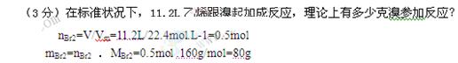 (3分)在標(biāo)準(zhǔn)狀況下,11.2L乙烯跟溴起加成反應(yīng),理論上有多少克溴參加反應(yīng)?