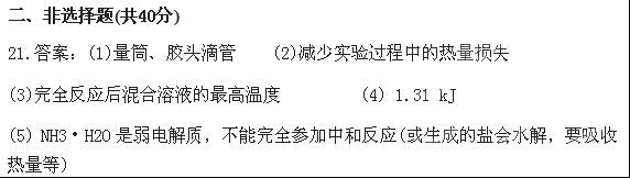 (5) 如果用50 mL 0.55mol/L的氨水(NH3·H2O)代替NaOH溶液進(jìn)行上述實驗,通過測得的反應(yīng)熱計算中和熱,其中和熱△H會偏大,其原因是