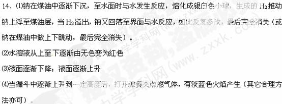 實(shí)驗(yàn)時(shí),往100 mL的大試管中先加入40 mL煤油,取2粒米粒大小的金屬鈉放入大試管后塞上橡皮塞,通過漏斗加滿滴有酚酞的水。根據(jù)反應(yīng)中觀察到的現(xiàn)象,回答下列問題。![]()