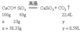 將23g石英與60g石灰石在高溫下反應,產生的氣體在標況下的體積為