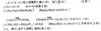 (3)由這五種元素形成的單質(zhì)或化合物中,能與水發(fā)生化學反應的有多種,請任寫出其中一種與水反應后生成一種單質(zhì)和一種化合物的化學反應方程式 。
