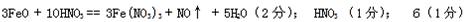 (4分)完成并配平下列化學(xué)方程式□FeO + □HNO3——□Fe(NO3)3 + NO↑+ □ ,