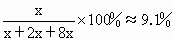如果空氣中混入甲烷的體積達(dá)到總體積的5%-15%這個(gè)范圍,點(diǎn)燃甲烷時(shí)就會(huì)發(fā)生爆炸.則發(fā)生爆炸最劇烈時(shí),CH4在空氣中的體積分?jǐn)?shù)約為 | |