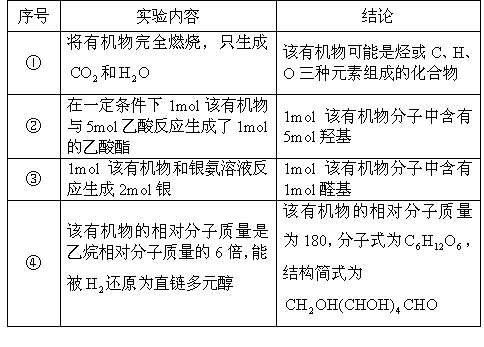 為測定某有機物的分子式和結構簡式,進行下列各步化學實驗,根據(jù)實驗事實逐一分析推斷,將結論填入下表中: