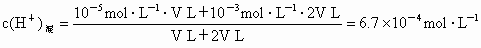 pH=5和pH=3的兩種鹽酸以1∶2體積比混合,該混合溶液的pH為