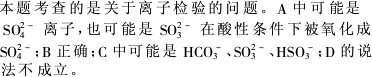 | A.加入Ba(NO3)2溶液,生成白色沉淀,加稀鹽酸沉淀不消失,則原溶液中一定有SO42– |