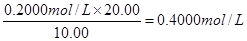 (4)根據(jù)表中數(shù)據(jù)可知,三次實驗中消耗鹽酸的體積分別是20.10ml、19.90ml、21.10ml。很明顯第三次實驗的誤差太大,所以消耗鹽酸的平均體積是(20.10ml+19.90ml)÷2=20.00ml,因此燒堿溶液的物質(zhì)的量濃度是