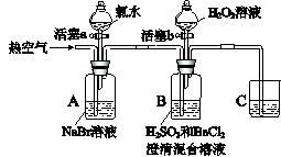 | II | 吹入熱空氣 | A中紅棕色明顯變淺;B中有氣泡,產(chǎn)生大量白色沉淀,混合液顏色無明顯變化. |
