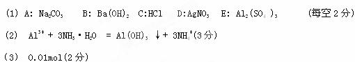 (15分) 現(xiàn)有A、B、C、D、E五種強電解質(zhì),它們在水中可電離產(chǎn)生下列離子(各種離子不重復)。
