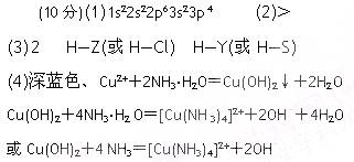 (10分)X、Y、Z、W是元素周期表前四周
