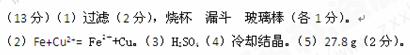 (13分)已知某工業(yè)廢水中含有大量FeSO4,較多的Cu2+,少量的Na+ 以及部分污泥,通過(guò)下列流程可從該廢水中回收FeSO4·7H2O晶體及金屬Cu。