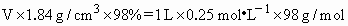 欲用98%的濃硫酸(ρ=1.84 g·cm-3)配制成濃度為0.25 mol·L-1的稀硫酸1000 mL.簡要回答下列問題: