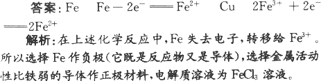利用Fe+2FeCl3=3FeCl2,設(shè)計一個原電池.該電池的負極材料為________;電極反應(yīng)式為________;正極材料為________,電極反應(yīng)式為________.