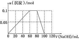 (3)假設(shè)過(guò)程中向該溶液中加入的NaOH溶液的物質(zhì)的量濃度為5 mol·L-1,請(qǐng)?jiān)谙聢D中畫出生成沉淀的物質(zhì)的量與加入NaOH溶液體積的關(guān)系示意圖.![]()