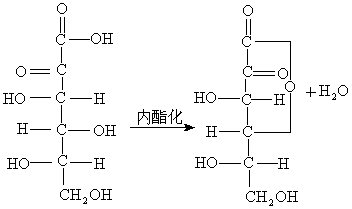 中靠近酮羰基一端的碳原子被氧化,氧化后的羧基為首端,它與第4個(gè)碳原子上的醇羥基脫水生成內(nèi)酯,試寫出山梨糖酸轉(zhuǎn)化為山梨糖酸內(nèi)酯的化學(xué)反應(yīng)方程式.