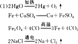 (1)寫出冶煉Hg、Cu、Fe、Na的化學方程式: