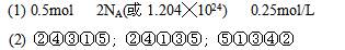 (1) 49gH2SO4分子_________mol,含有O原子___________個(gè)。完全溶于水,配成2 L溶液,則所得溶液的物質(zhì)的量濃度為_____________________。
