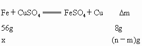 溶液中,過一會兒取出干燥,鐵片質(zhì)量為n g,則被氧化的鐵片質(zhì)量是