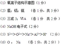 (5)五種元素的簡單離子半徑從大到小的順序是 (用元素離子符號填寫)