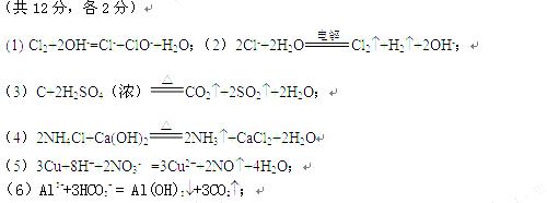 (6)若C是食鹽溶液,D是一種白色膠狀沉淀,E是一種能產(chǎn)生溫室效應(yīng)的氣體,寫出符合上述框圖關(guān)系的離子方程式 (寫出符合要求的一個即可)。