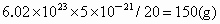 某固體僅由一種元素組成,其密度為5g·cm-3,用X射線研究該固體的結構表明,在棱長為1×10-7cm的立方體中含有20個原子,求此元素的近似相對原子質量。