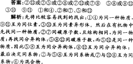 互為同素異形體的有 ,屬于同位素的有 , 是同一種物質(zhì)的有 。