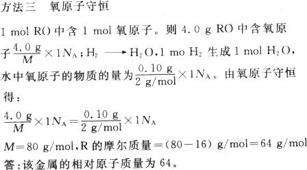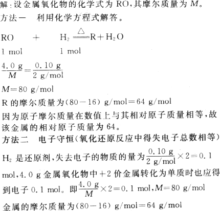 用氫氣還原某二價金屬氧化物,使金屬元素成為單質,每4.0 g金屬氧化物被還原時,需耗用0.10 g氫氣,則該金屬的相對原子質量是多少?