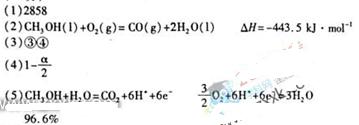 (5)在直接以甲醇為燃料電池中,電解質(zhì)溶液為酸性,負極的反應式為________、正極的反應式為________。理想狀態(tài)下,該燃料電池消耗1mol甲醇所能產(chǎn)生的最大電能為702.1kj,則該燃料電池的理論效率為________(燃料電池的理論效率是指電池所產(chǎn)生的最大電能與燃料電池反應所能釋放的全部能量之比)