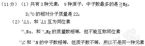 O中共有______種元素,______種原子,中子數(shù)最多的是 。D218O的相對分子質(zhì)量是______。